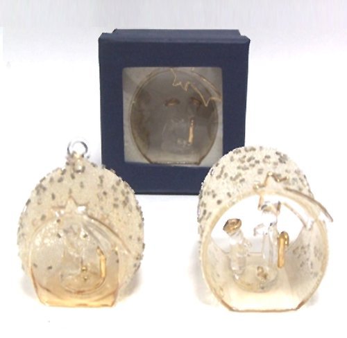 Idea Natale: palla aperta in vetro granigliato per albero con presepe all'interno con oro e perline. - Offerta